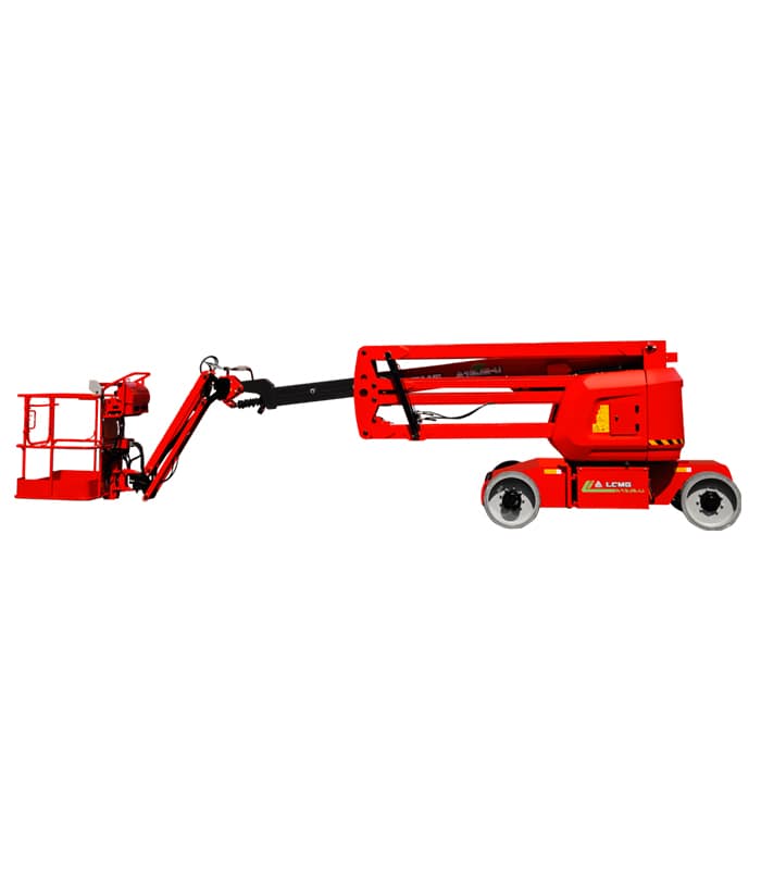 LGMG A13JE articulating boom lifts can be equipped with large capacity lithium battery or lead-acid battery. Simple and reliable design make this machine easy to operate. With compact size and small tail swing design, A13JE is convenient for construction tasks in narrow places.